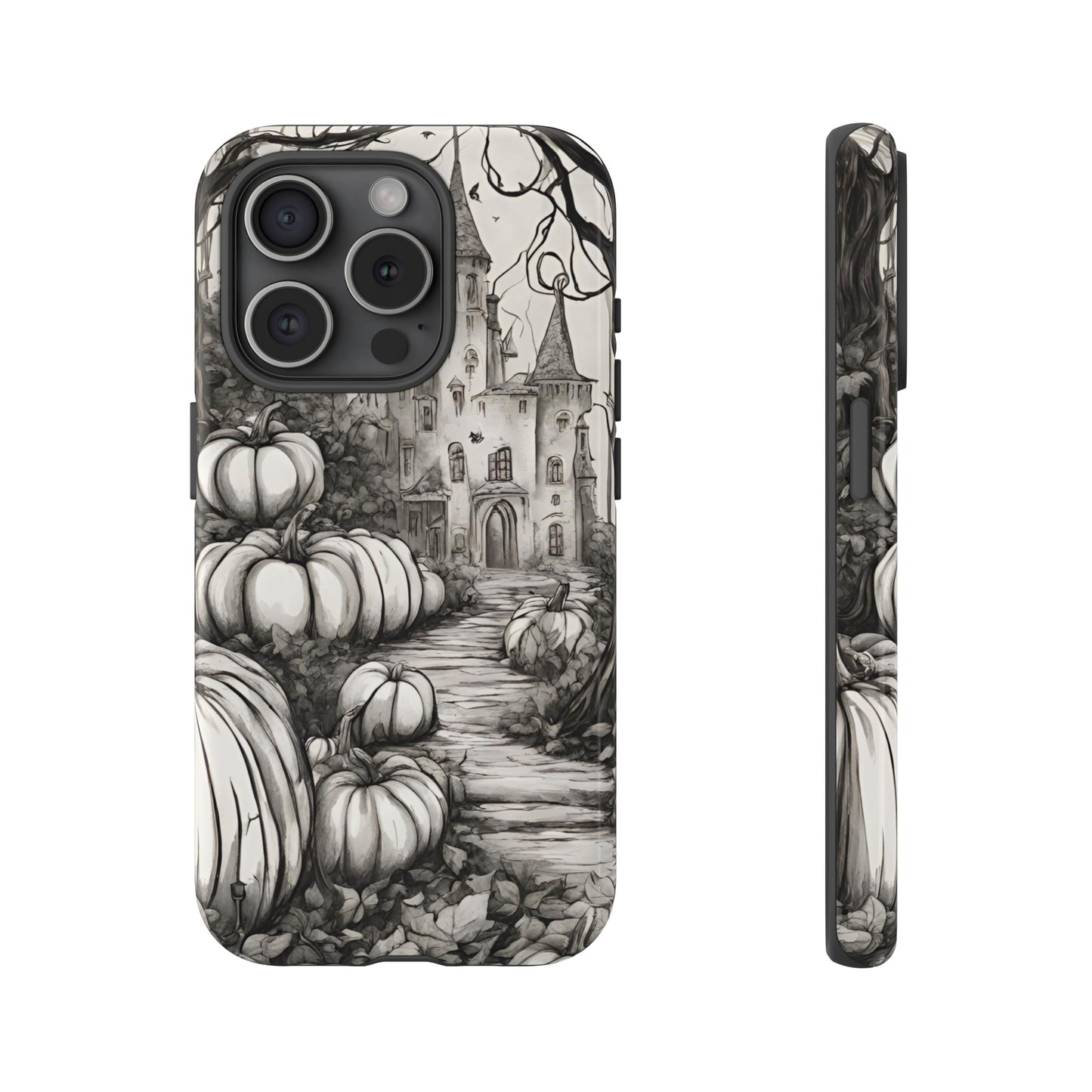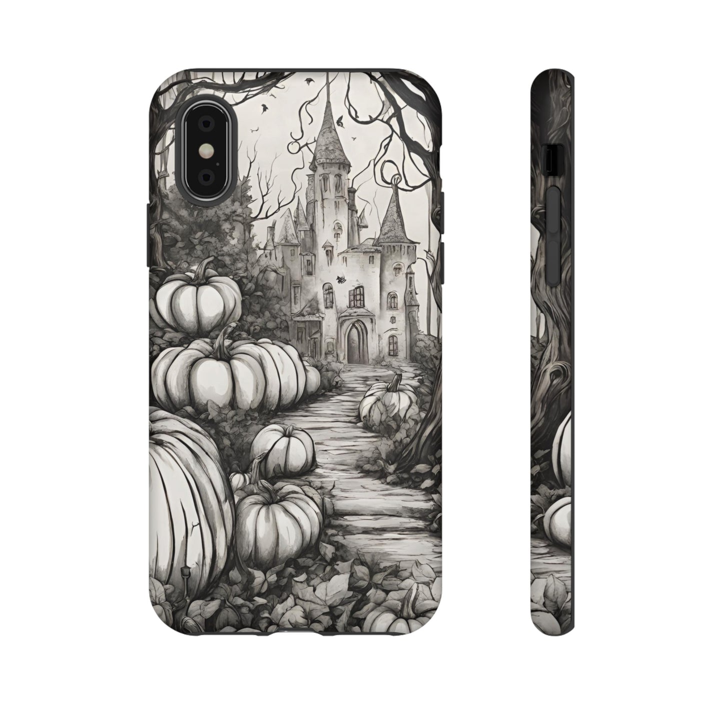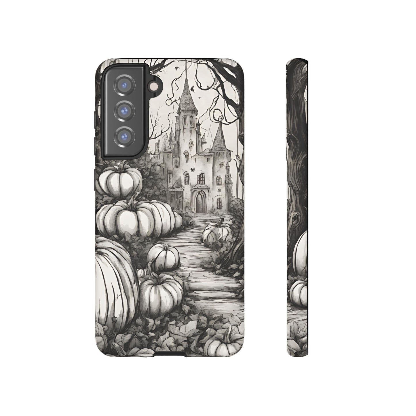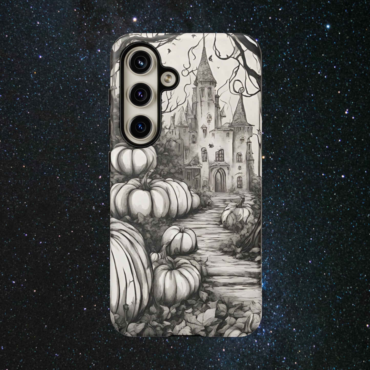 Embrace the mysterious allure with this case featuring a haunted house looming in the back surrounded by enigmatic pumpkins, evoking the spirit of the season✨️