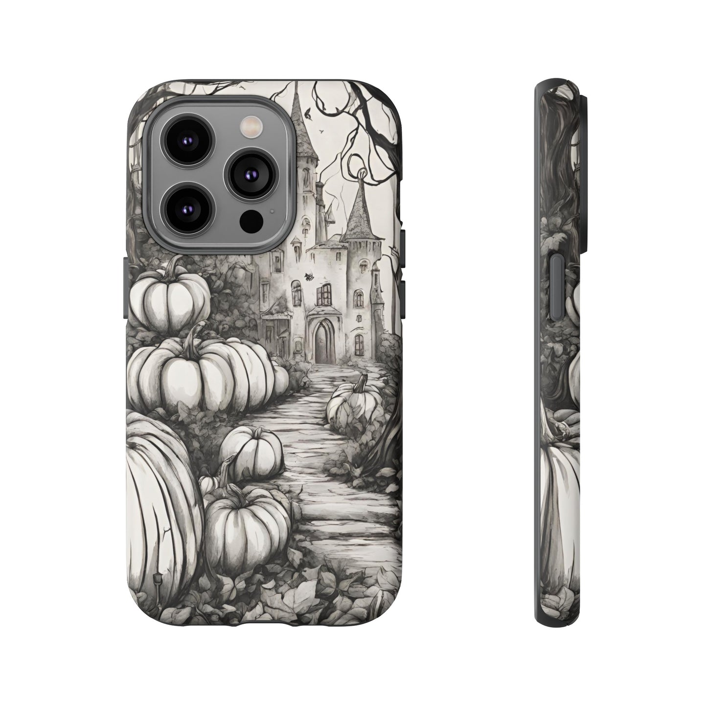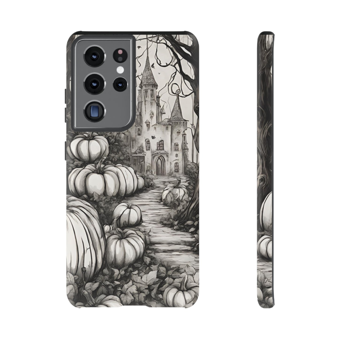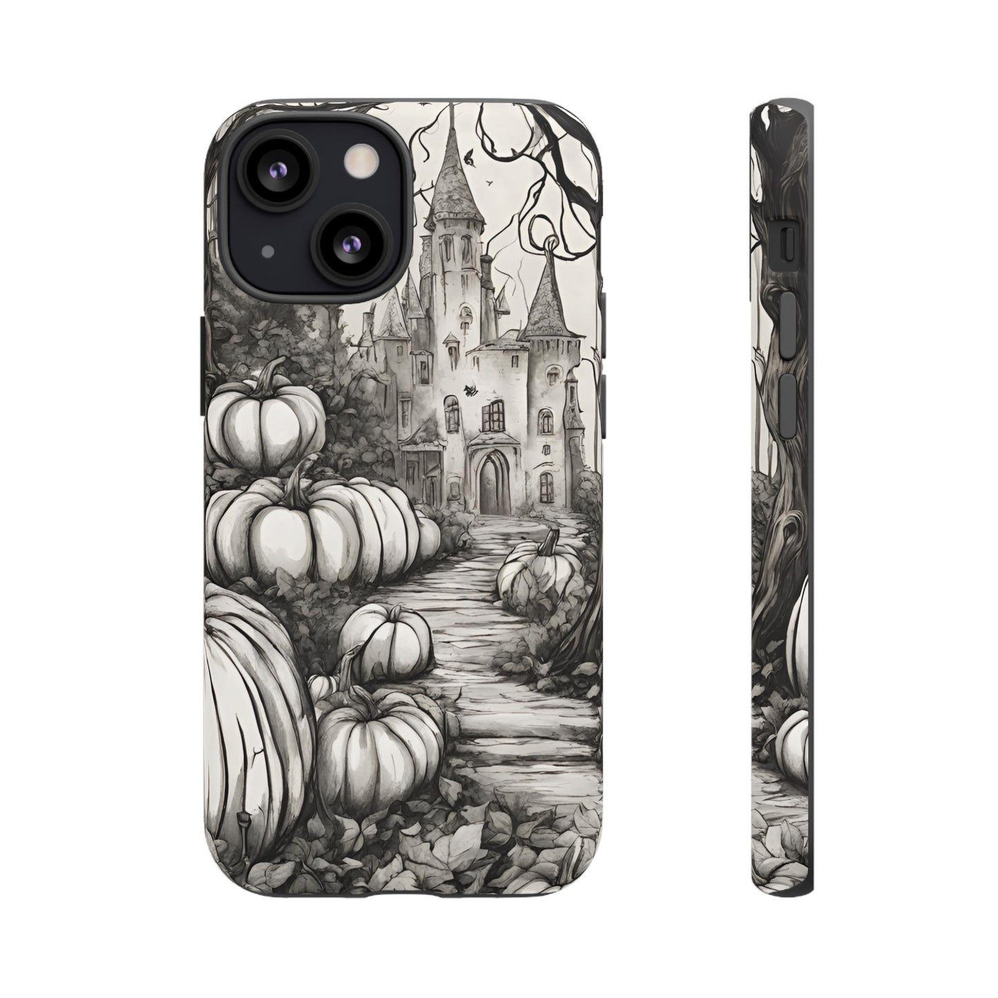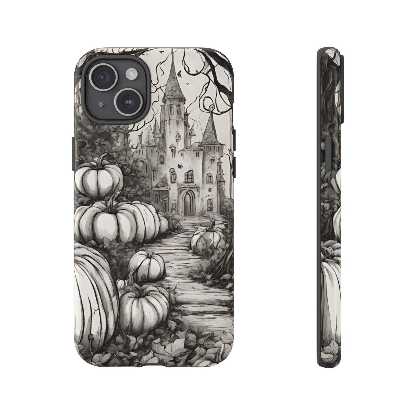 Embrace the mysterious allure with this case featuring a haunted house looming in the back surrounded by enigmatic pumpkins, evoking the spirit of the season✨️