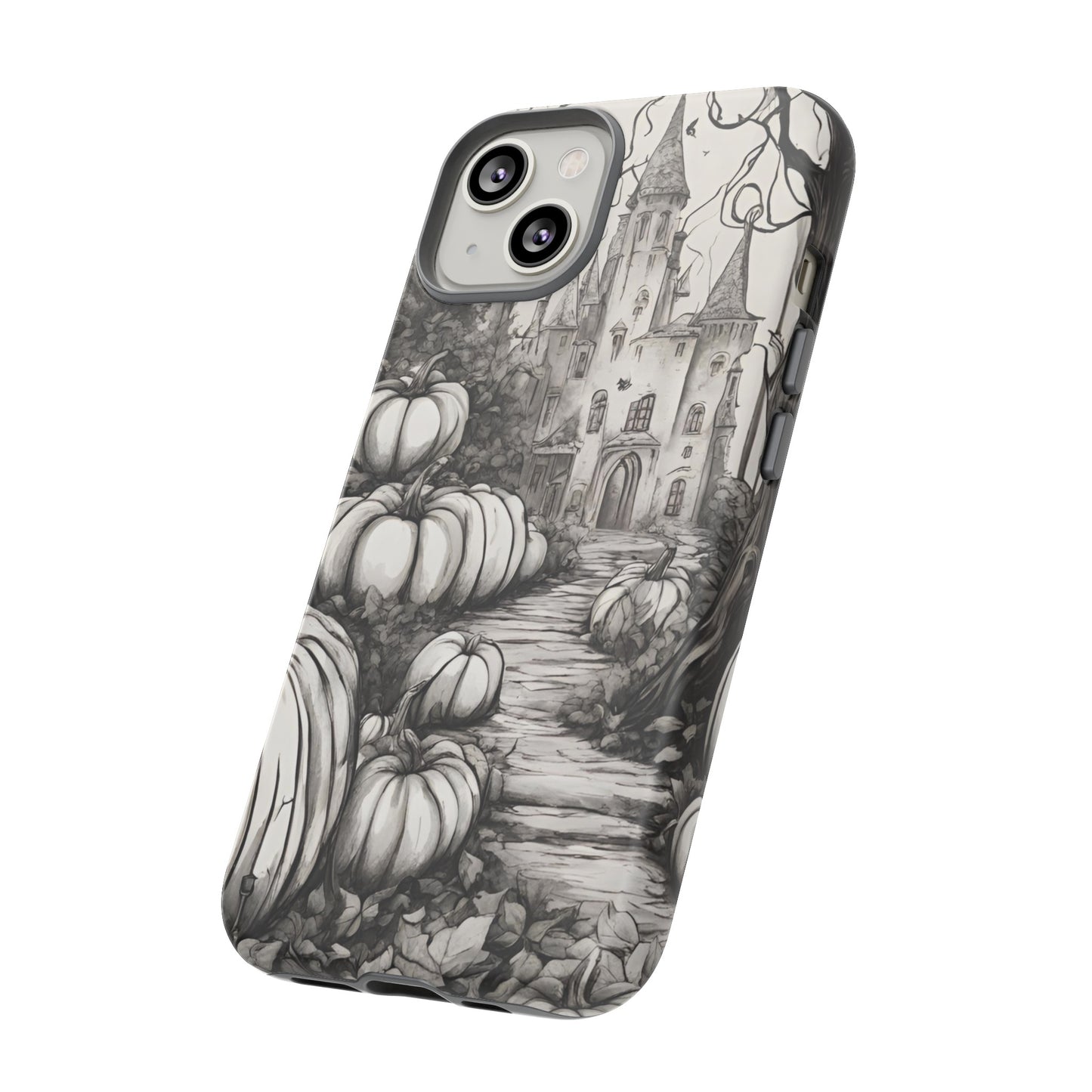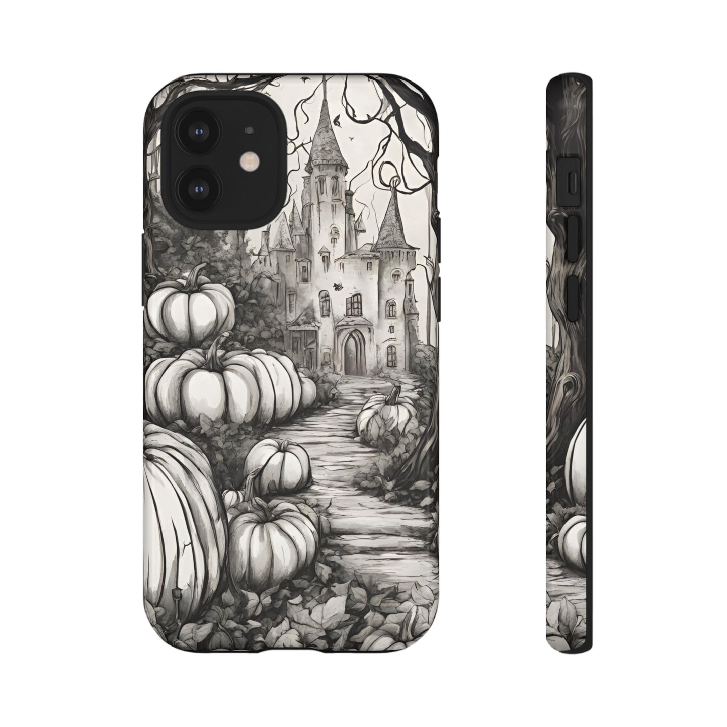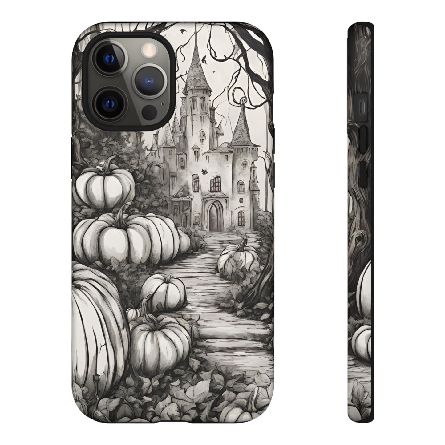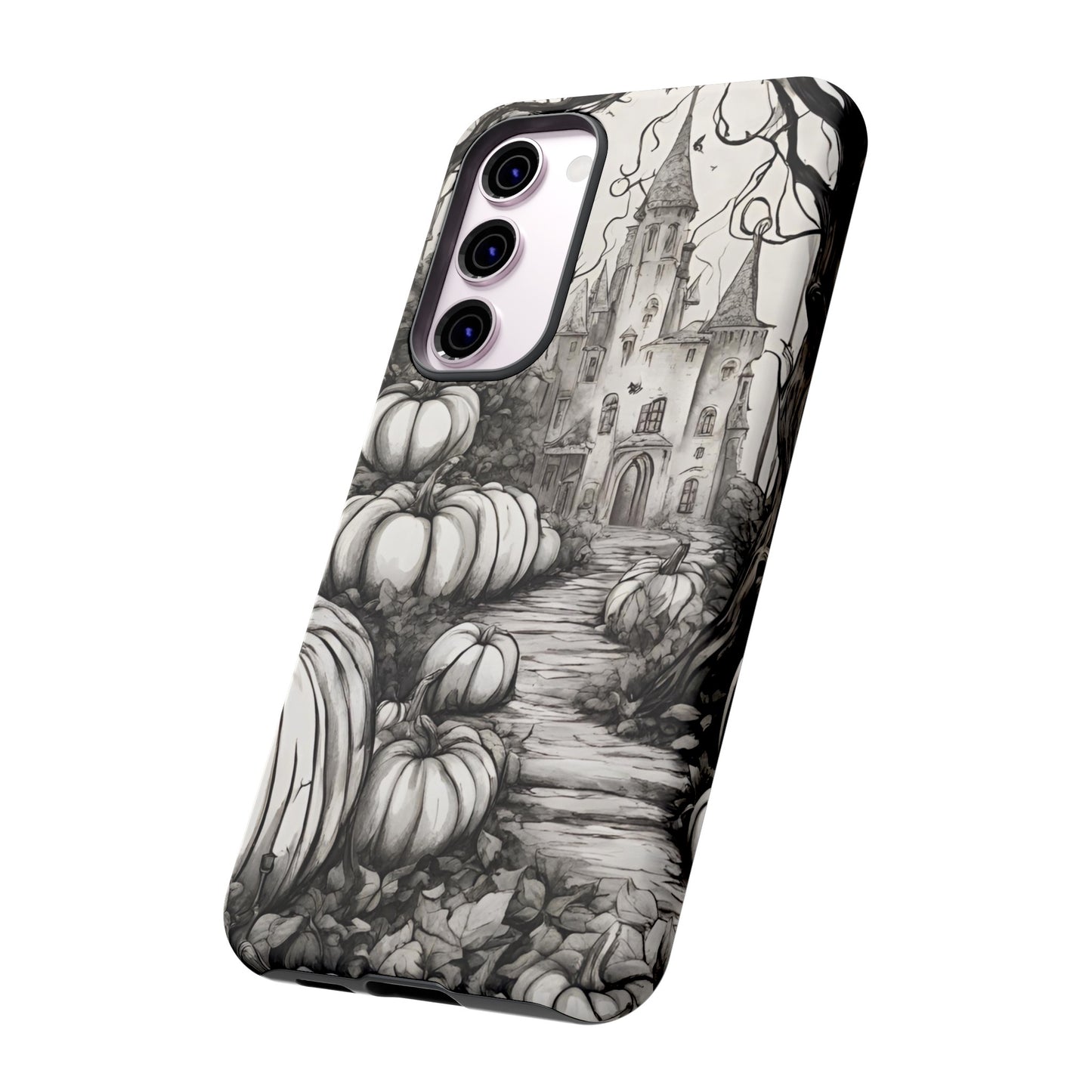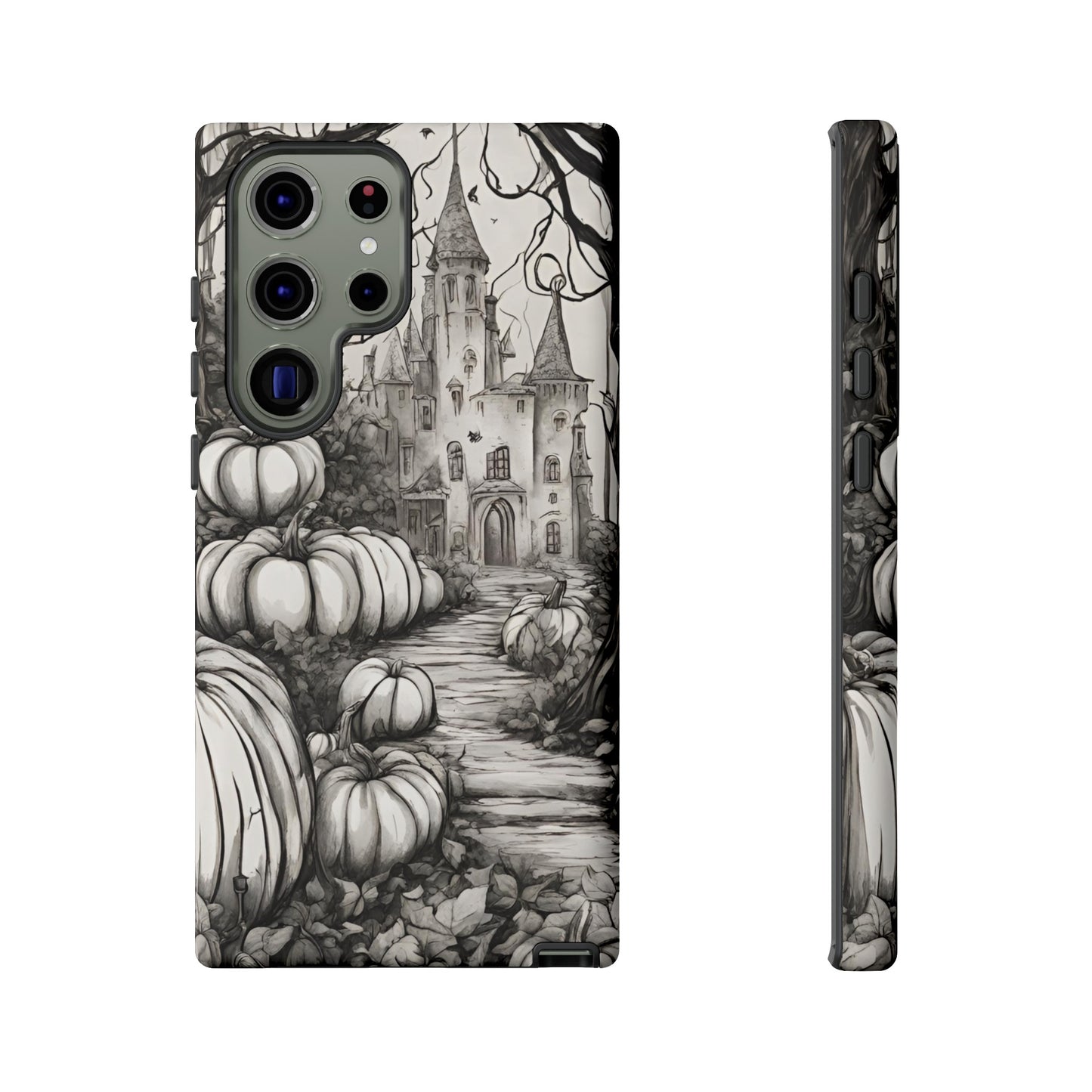 Embrace the mysterious allure with this case featuring a haunted house looming in the back surrounded by enigmatic pumpkins, evoking the spirit of the season✨️