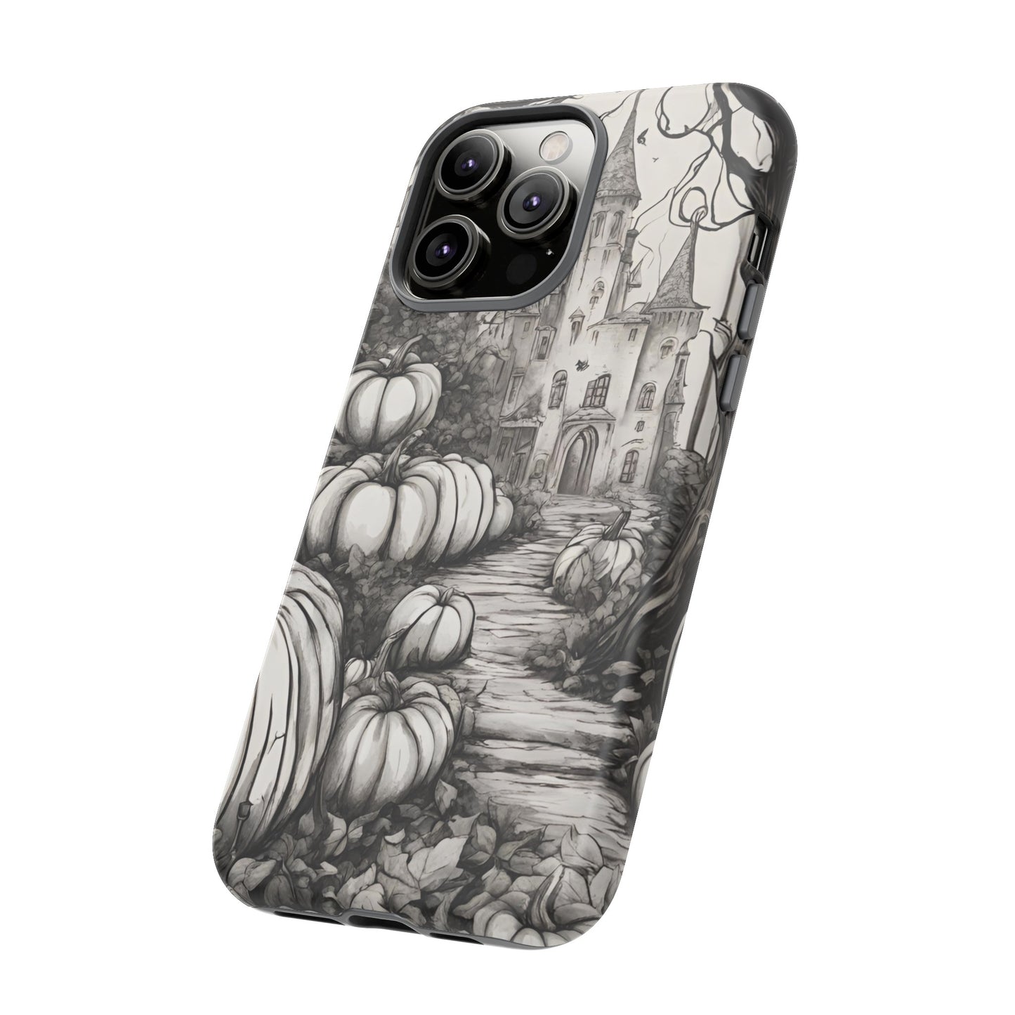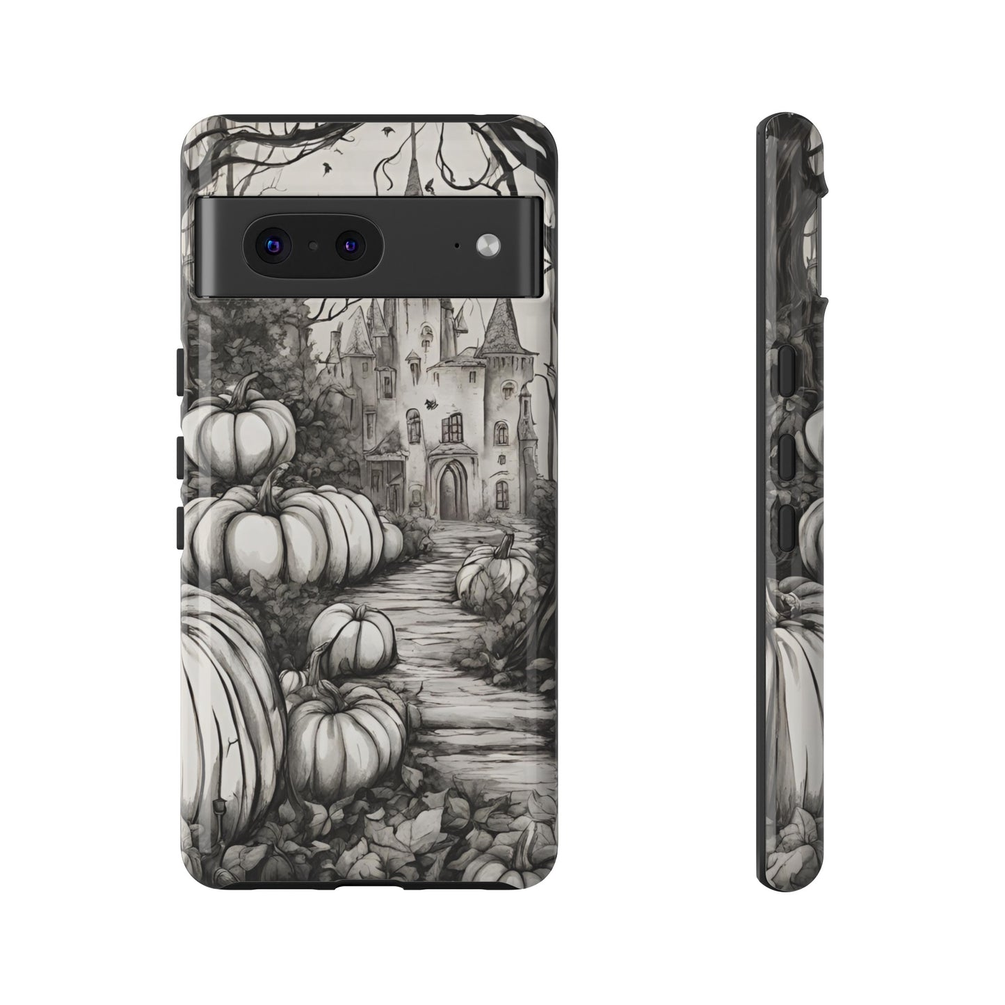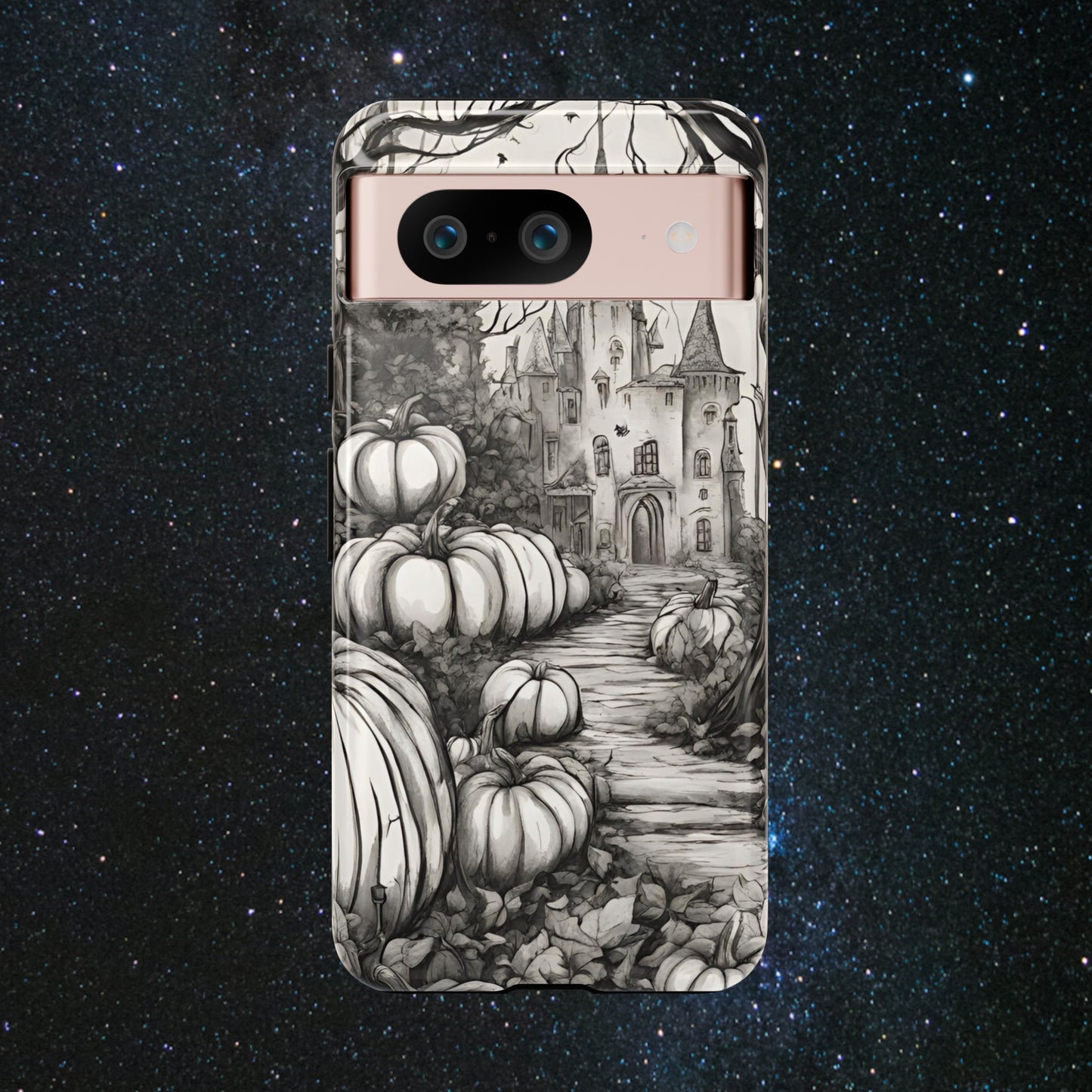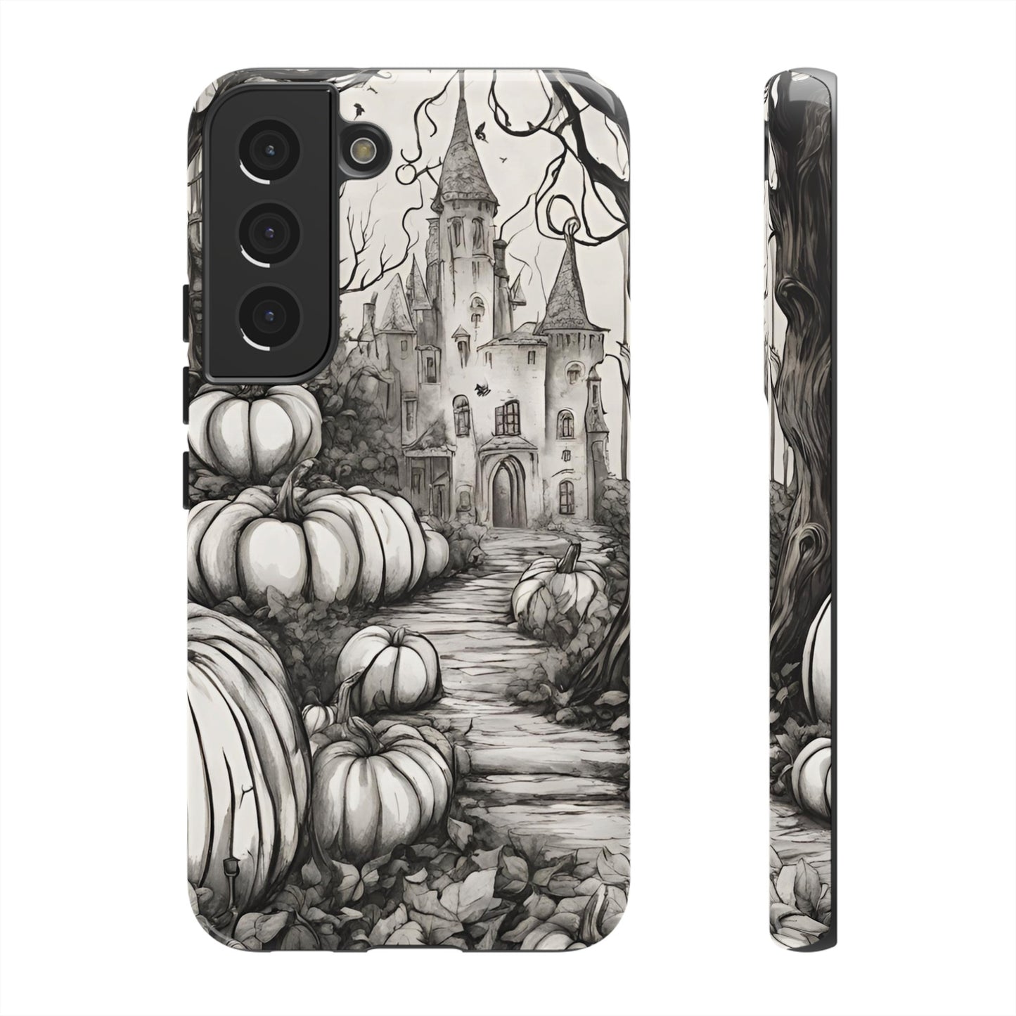 Embrace the mysterious allure with this case featuring a haunted house looming in the back surrounded by enigmatic pumpkins, evoking the spirit of the season✨️