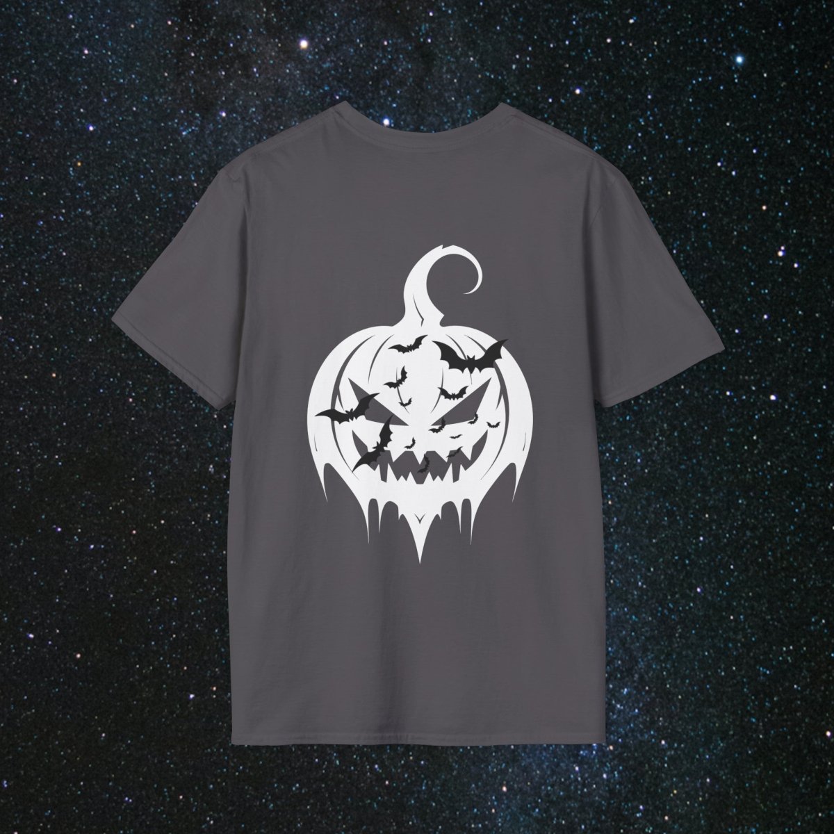 Embrace the mysterious allure with this shirt featuring a haunted house looming in the back surrounded by enigmatic pumpkins, evoking the spirit of the season✨️