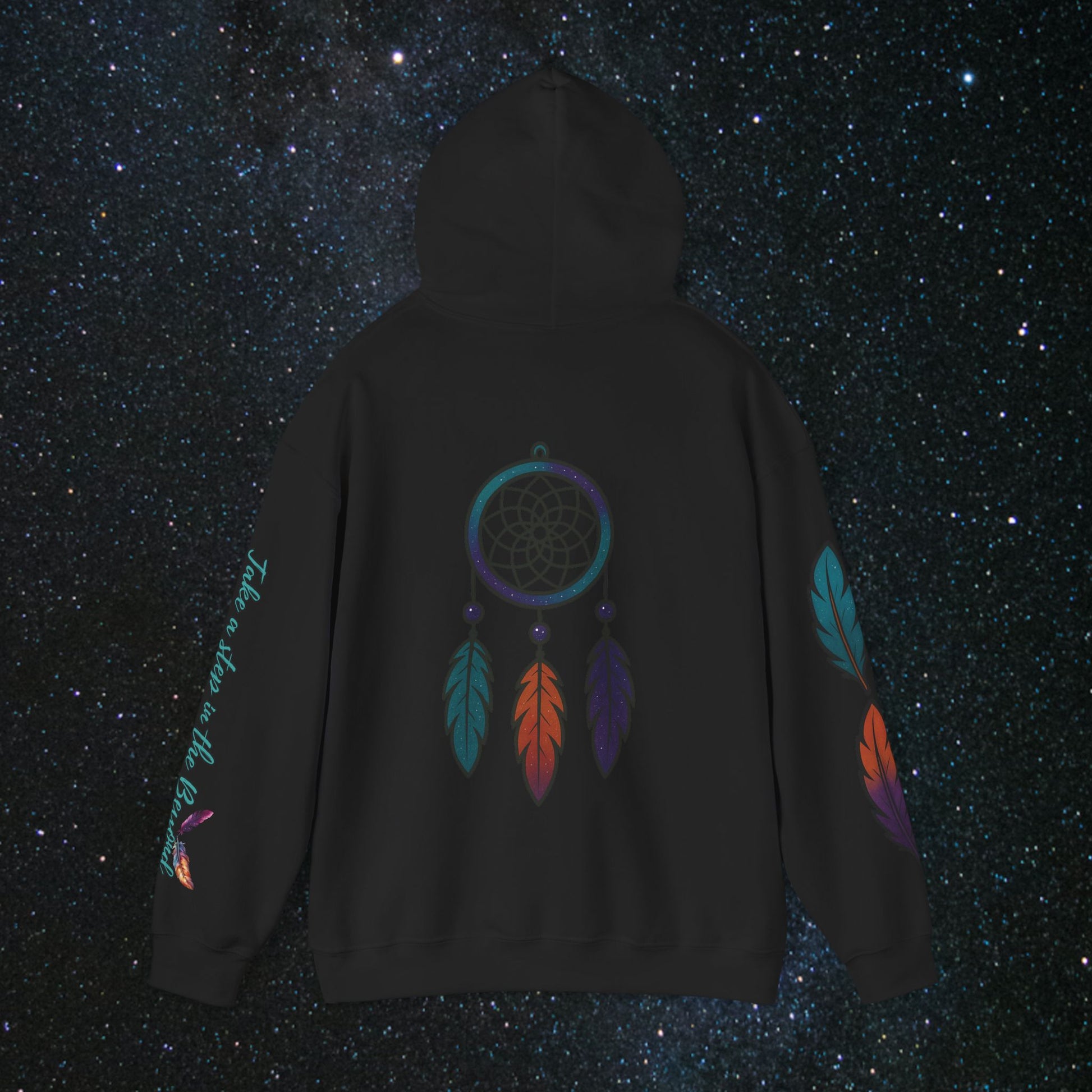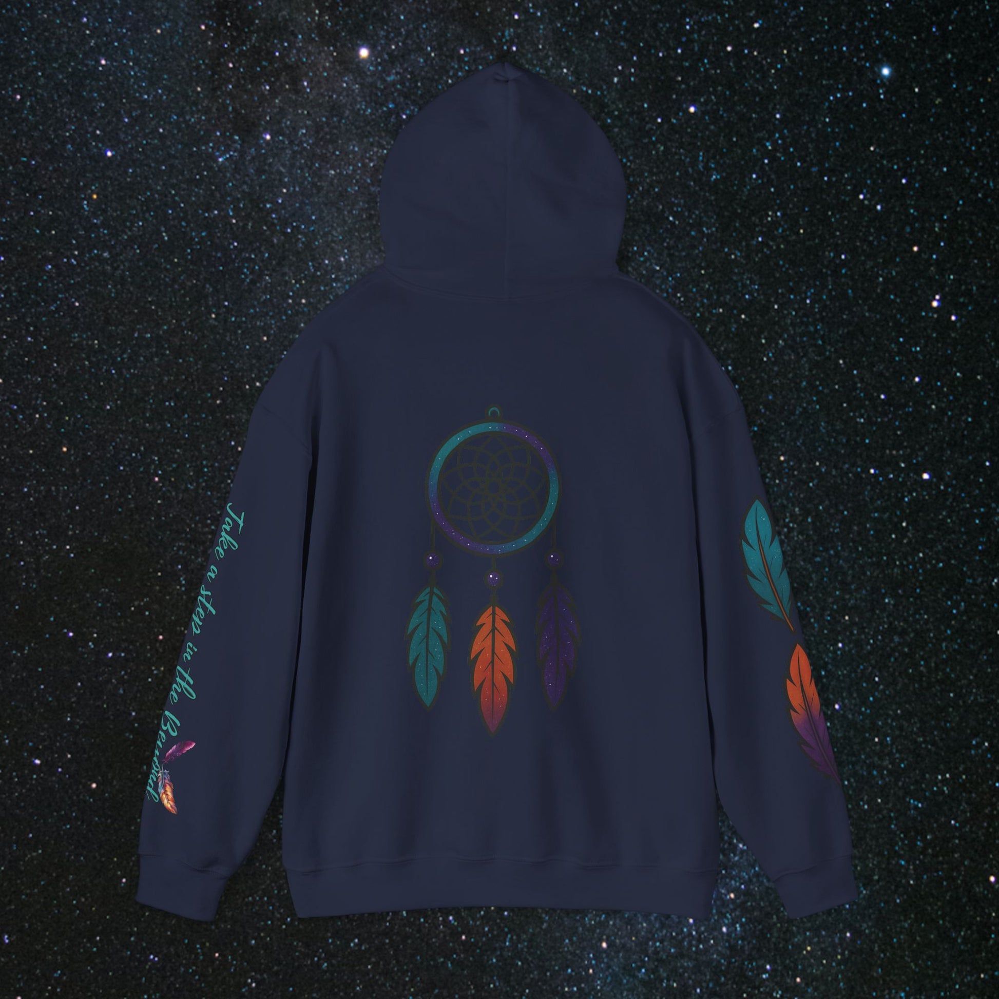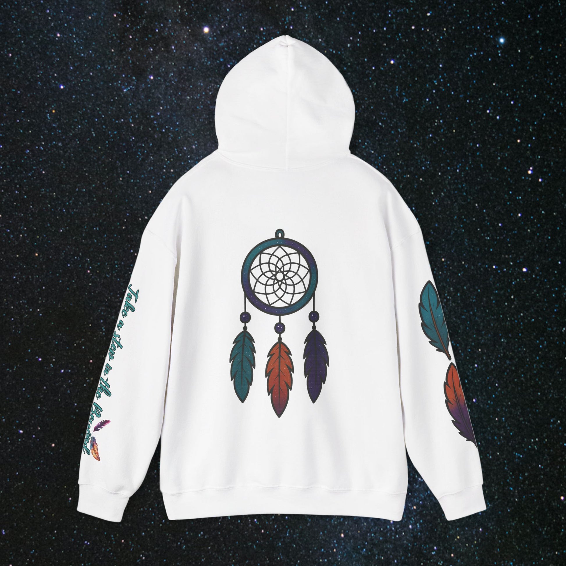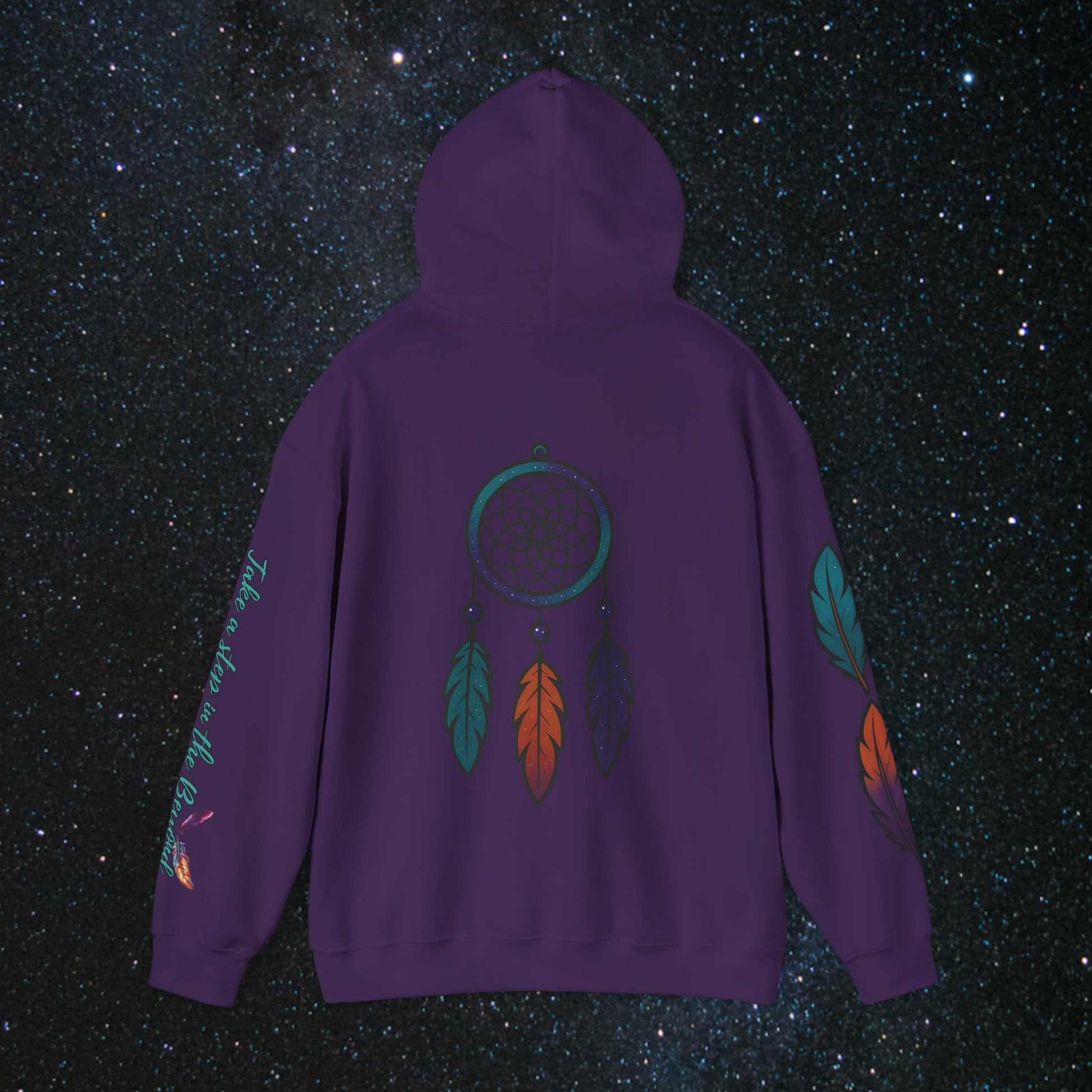 Step into the cosmic journey with the Cosmic Dream Walker hoodie. Embrace the fusion of celestial wonder and ancient Indigenous wisdom. Wear it to inspire your own quest for the universe's secrets and the soul's mysteries✨️