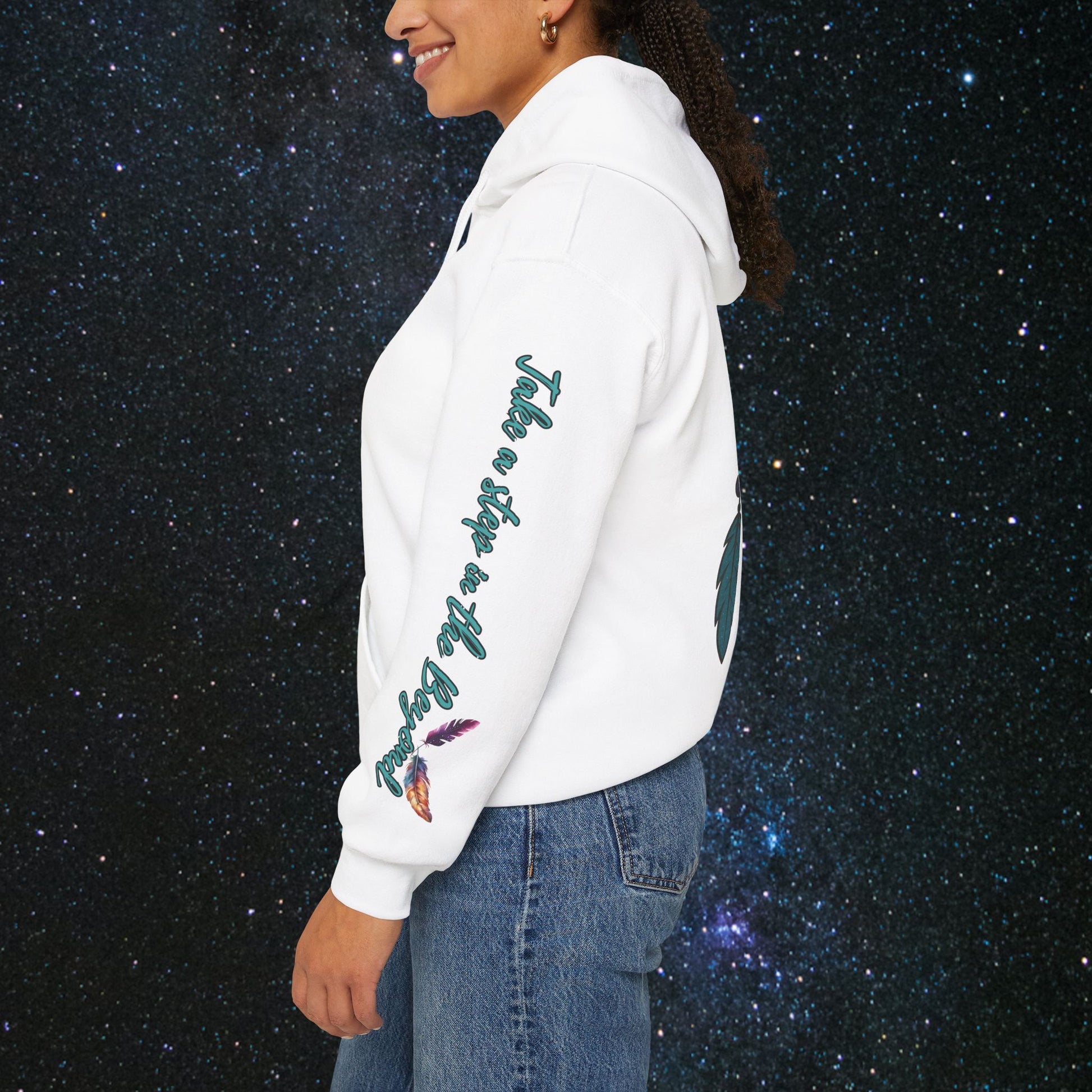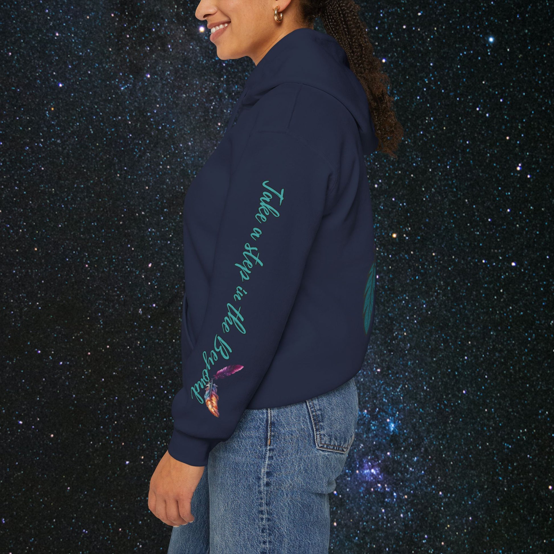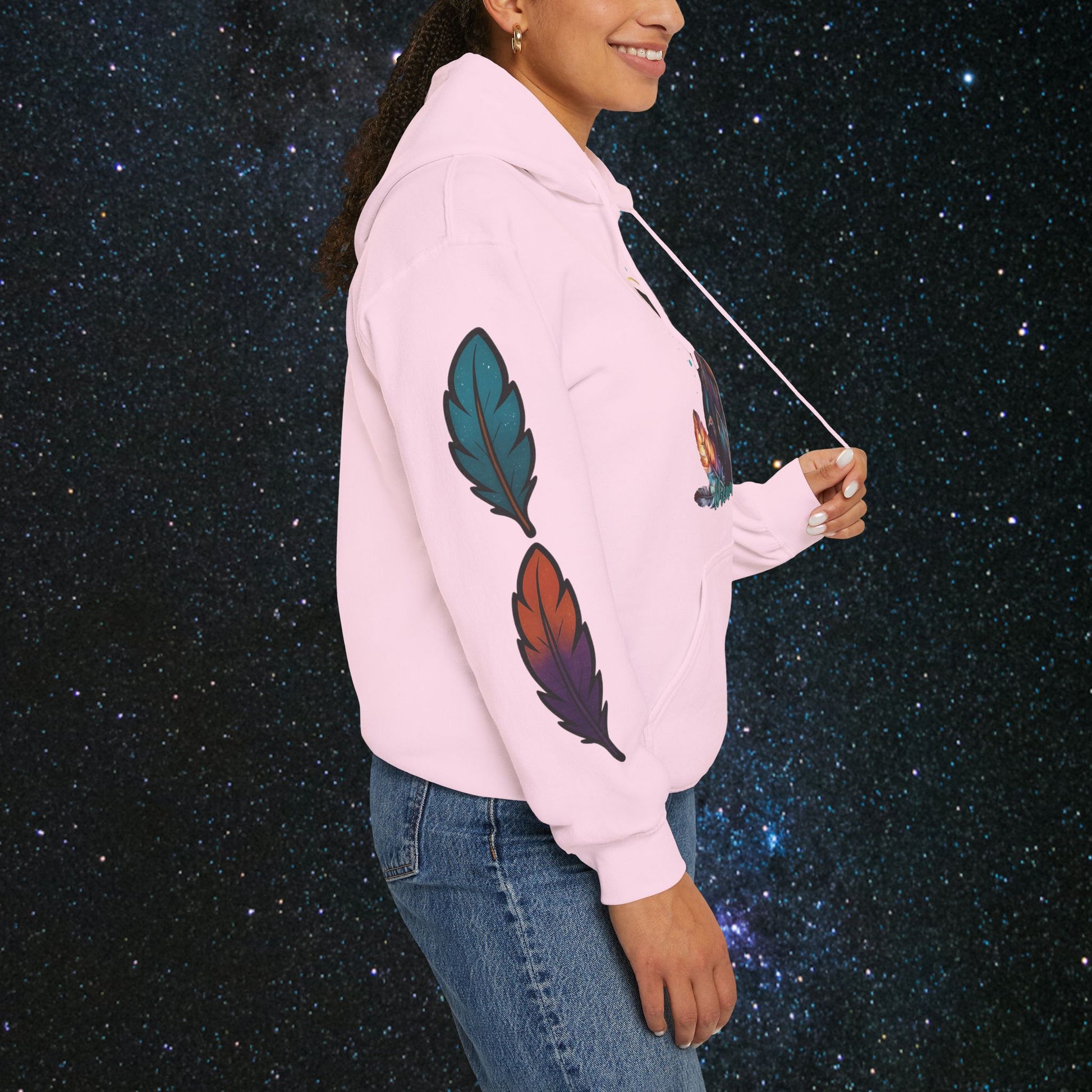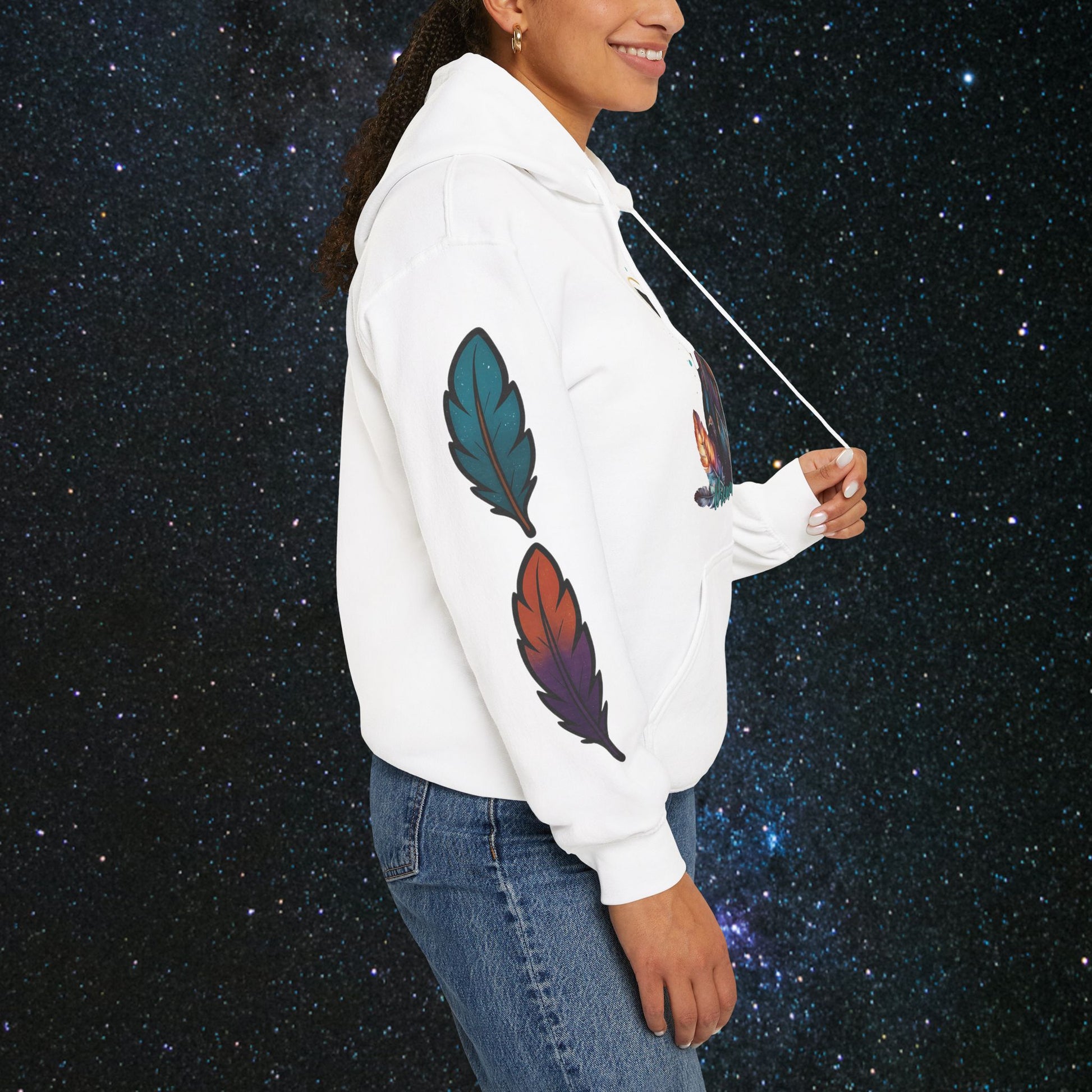 Step into the cosmic journey with the Cosmic Dream Walker hoodie. Embrace the fusion of celestial wonder and ancient Indigenous wisdom. Wear it to inspire your own quest for the universe's secrets and the soul's mysteries✨️