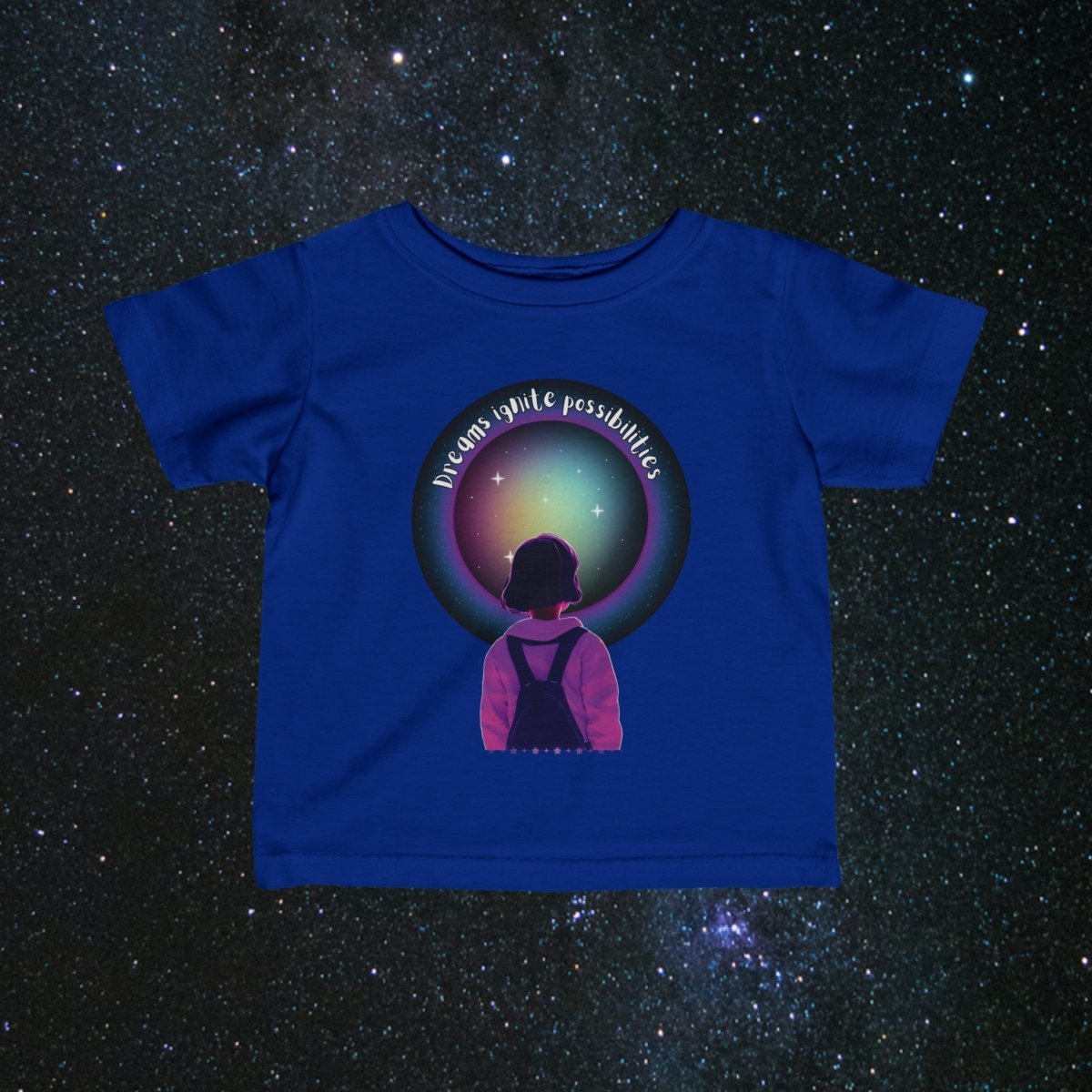 A children's shirt designed to spark imagination and ambition, symbolizing hope and creativity. It encourages children to dream big, showcasing vibrant colors and engaging designs. The shirt serves as inspiration for shaping the future and unlocking potential through dreams.