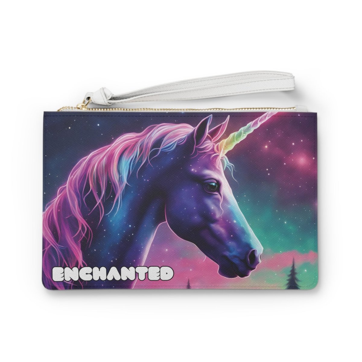 This vibrant clutch features a stunning unicorn design bursting with color and life. Perfect for carrying your essentials while capturing the whimsical and enchanting spirit of these mythical creatures, bringing a touch of fantasy to every zip✨️