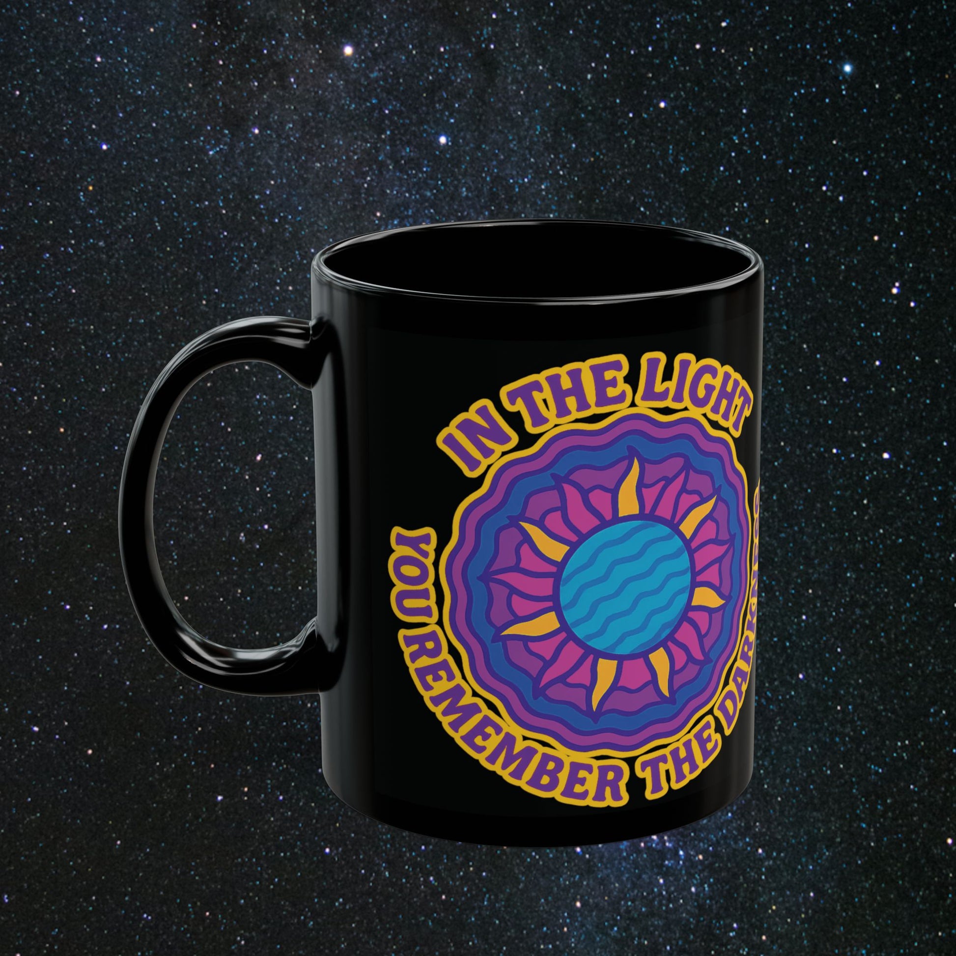 "Find inspiration with every sip from this mug, reminding you that you have to go through darkness to find the light. Perfect for coffee, tea, or any favorite drink, it serves as a daily motivation to persevere through challenges and emerge stronger. A powerful symbol of resilience and hope."