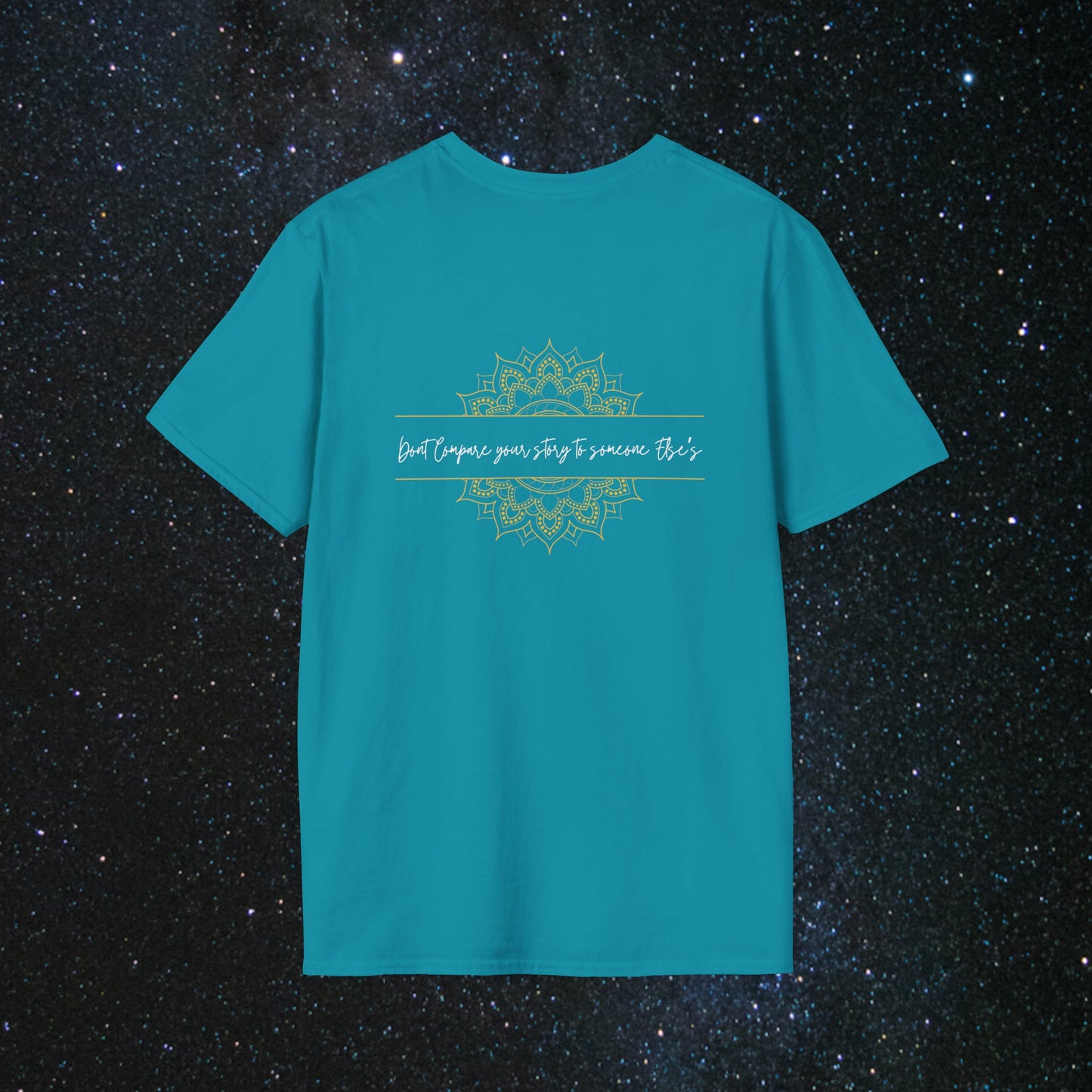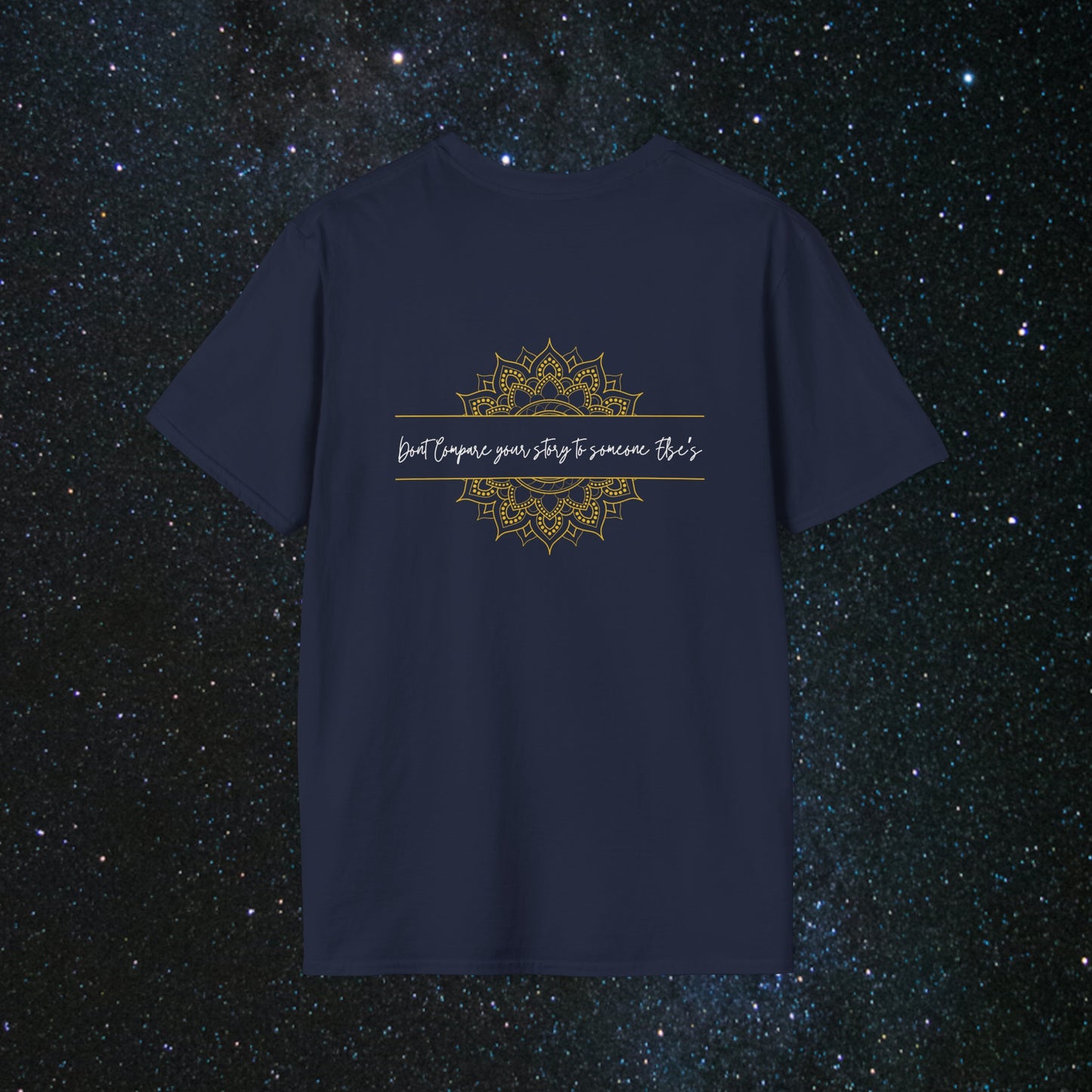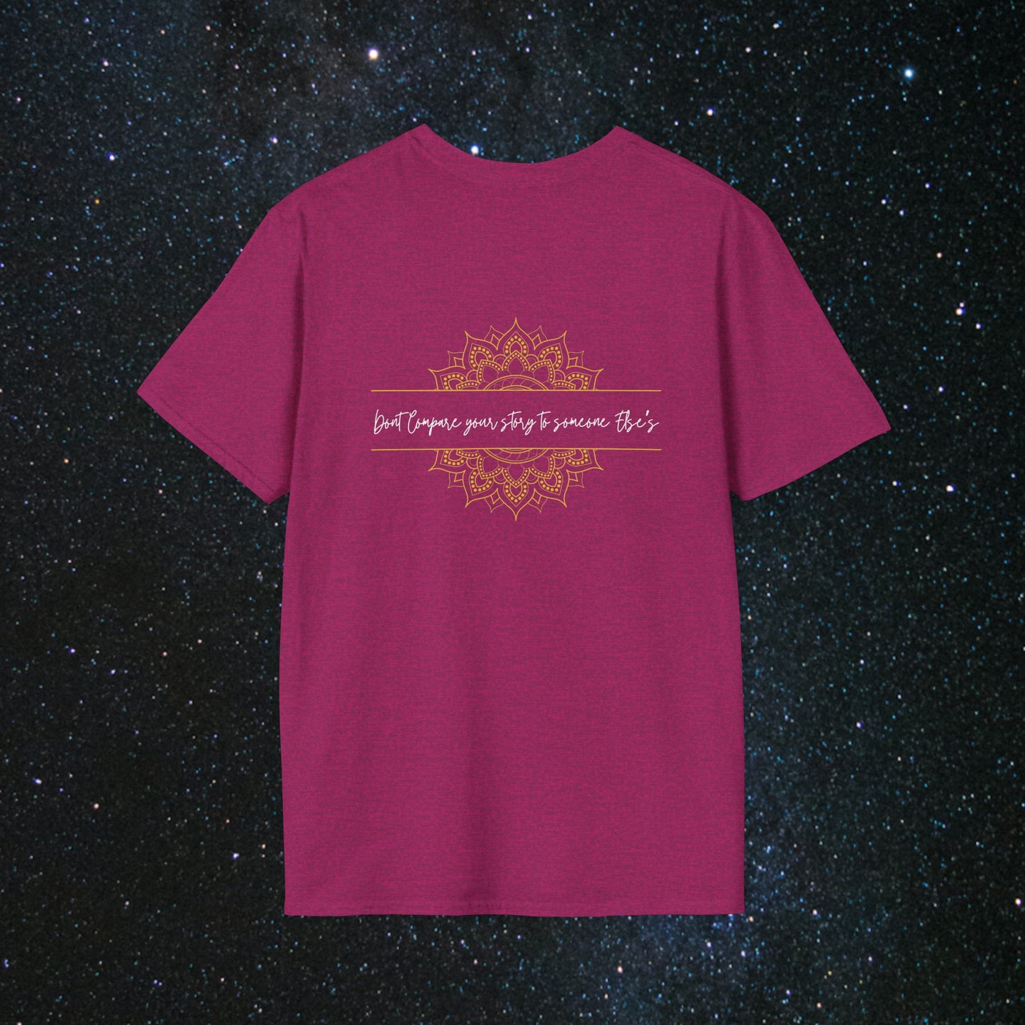 This shirt symbolizes your unique journey, reminding you not to compare your story to others. It represents empowerment and accompanies you on your life's unique path. Whenever you wear it, remember that your spiritual path is yours alone - incomparable, unmatched, and truly your own.✨️